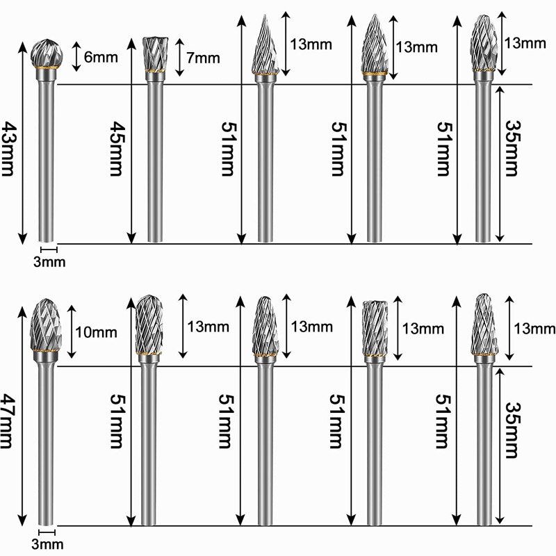 Efficient: Machining hardness reach HRC70, for the most work, rotary burr set it can replace petiole small wheel. And their working life is 10 times longer than normal HSS burr, 200 times longer than petiole small wheel.