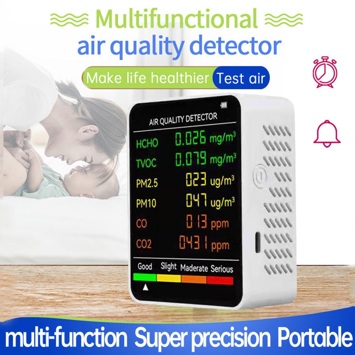 Thanks to this multi-functional air quality detector, harmful gases produced in production and life can be detected, creating a healthy environment for you.
