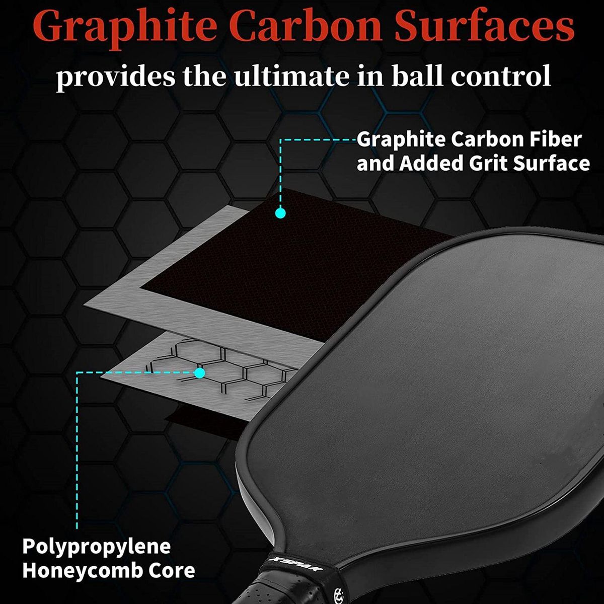 Detailed Information About The Product:Pioneering an entirely new technology, never seen in the Pickleball industry.The sleek fiber surface generates unmatched ball spin, and defuses your opponents spin effortlessly and accurately.