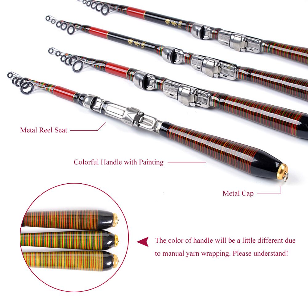 This fishing kit includes a carbon fiber fishing rod, a spinning fishing reel, a portable lightweight fishing bag and a box of fishing accessories. The fishing gears kit is suitable for fishing lovers and new anglers portable to carry outside.
