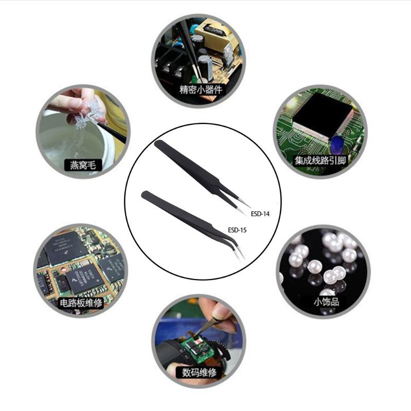 100% and high quality Features: This ESD Tweezer is great for use related to soldering, jewelry, crafts, hobbles, and mechanics. The sharp tip allows for precision for installing and replacing small electronic components. Our anti-static tweezer is ideal for handling IC s with care. The stainle steel design is comfortable and durable. Perfect for hard to reach places.