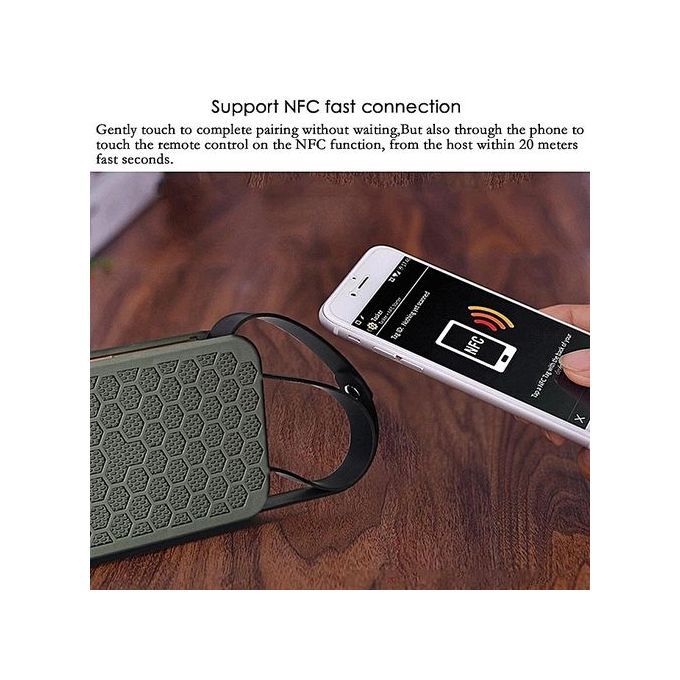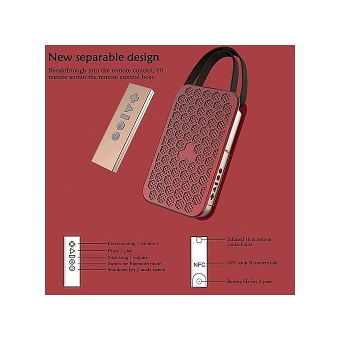 10 meters within the range of easy remote control host, switch / up and down switch / pause A speaker four kinds of use, TF card playback, U disk playback, AUX transmission playback, Bluetooth playback Built-in 1200MAH large capacity battery, medium volume can play 6-8 hours 40 caliber 16-core full-range speakers, large diameter diaphragm, better sound Support NFC fast connection, you can touch the connection can be completed