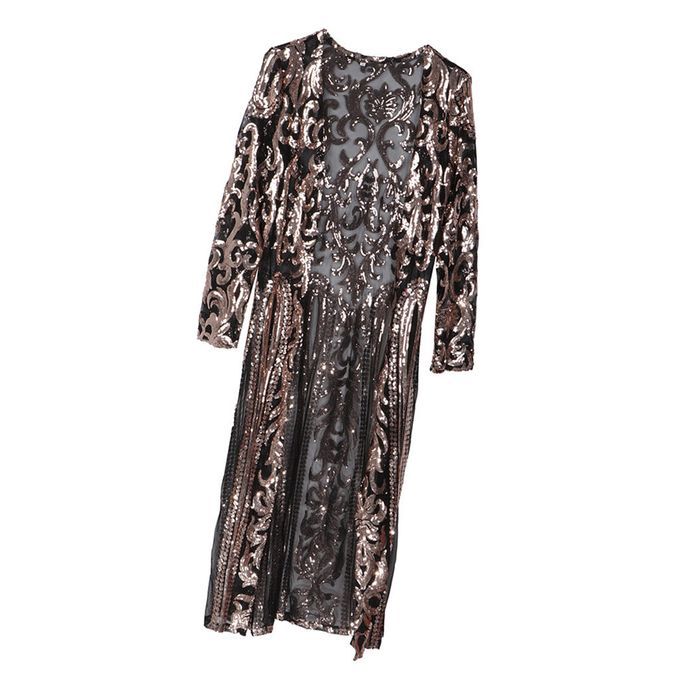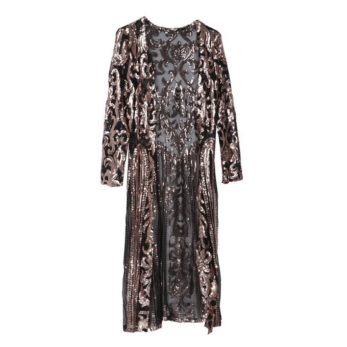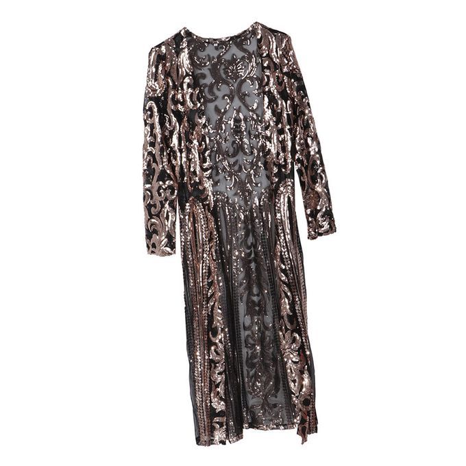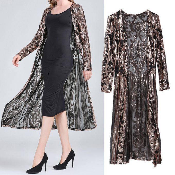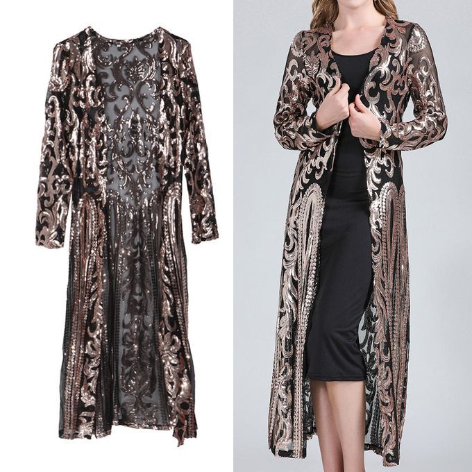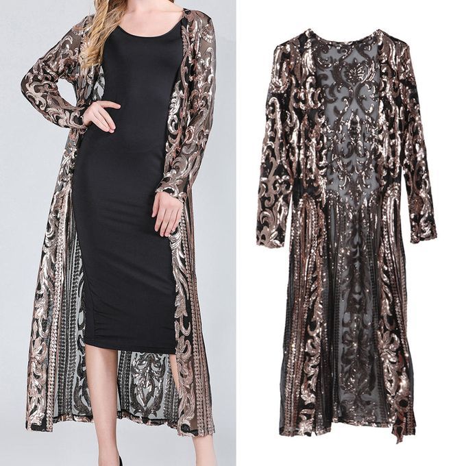 Women's Cover Up Long Sleeve Sequins Loose Open Front Cardigan Coat Dress.