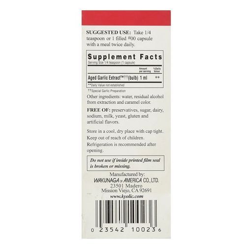 Kyolic Liquid begins with time-tested organic farming techniques. Organic cultivation is essential to grow naturally balanced garlic bulbs. Kyolic liquid is rich is essential nutrients, free from pesticides or herbicides. Kyolic Liquid is the Original Liquid Formula. Kyolic originated with a liquid formula Aged Garlic Extract over 40 years ago. Kyolic is the world's best-selling garlic supplement. One of the benefits of the liquid form is that it is absorbed and assimilated by the body faster than other forms.