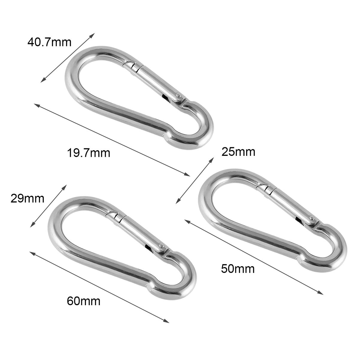 Made of stainless steel, rust resistant and durable. This quick link lock ring carabiner can be a perfect connecting tool for your outdoor activities.