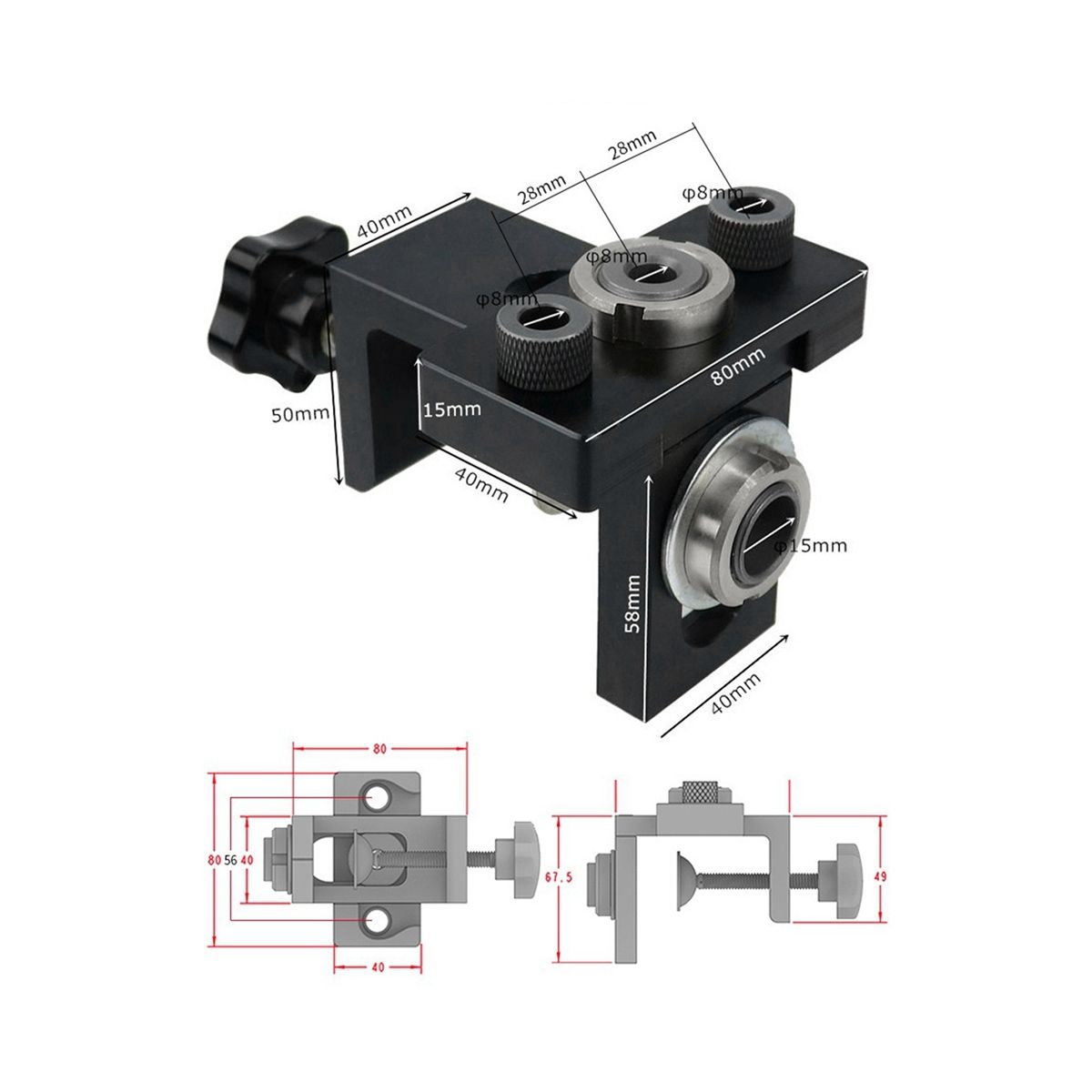 Features: Made of aluminum alloy, anodized surface treatment, nitrided hard tool steel drill sleeve.High hardness, wear and durability.