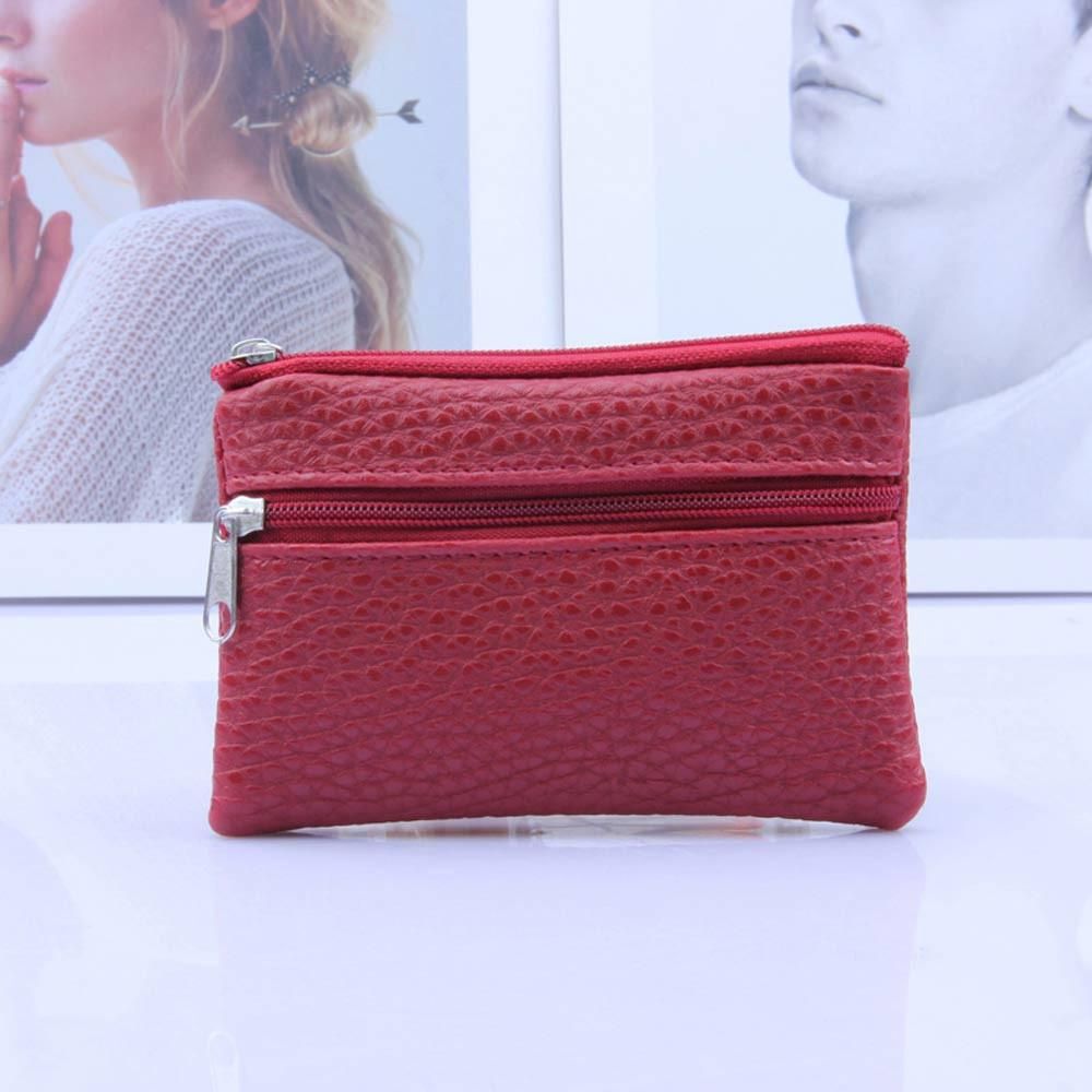 1X Cartera pequena de cuero multifuncional con cremallera para hombre y mujer monedero pequeno tarjetero