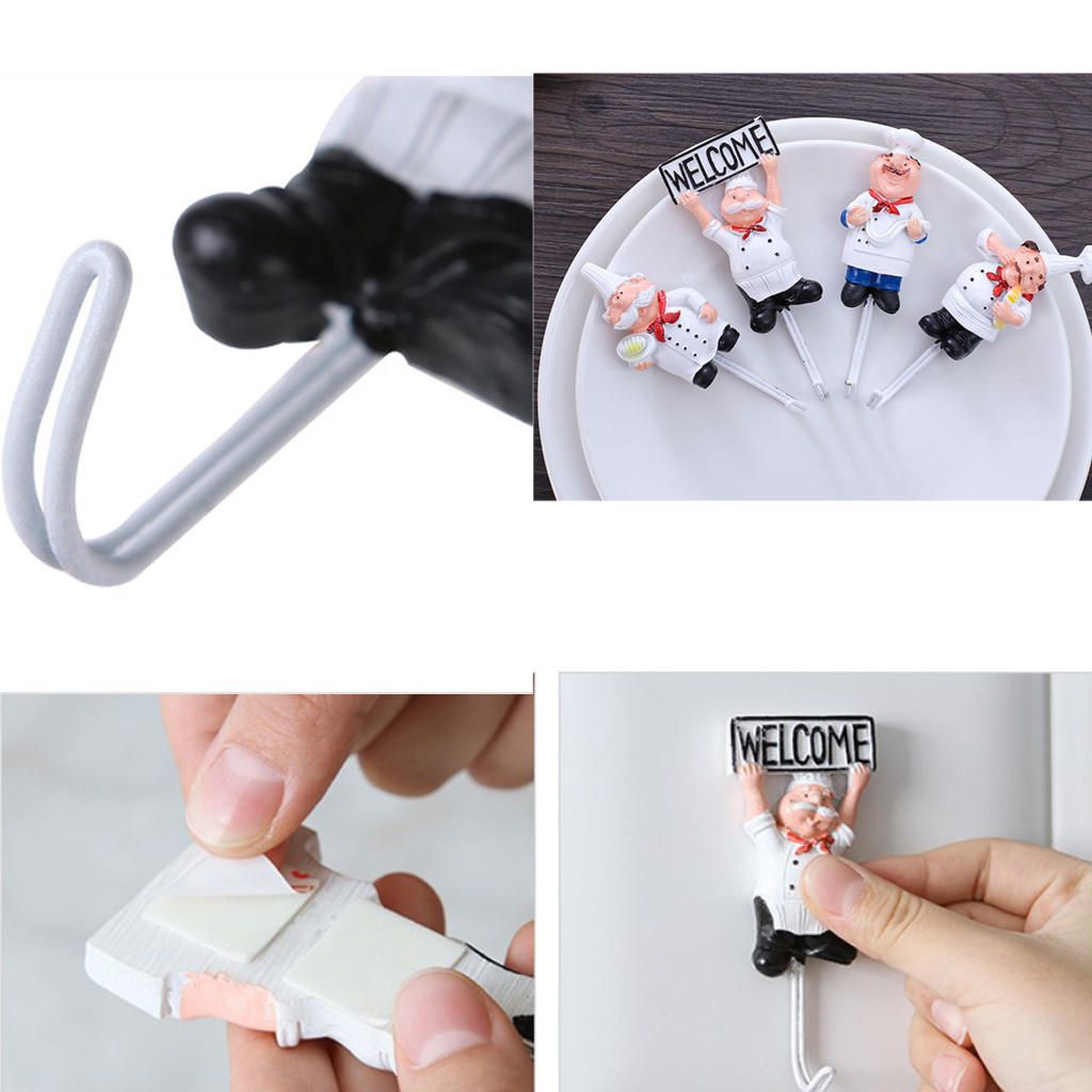 Resin Wall Hook;Coat Robe Hook;Self Adhesive Hooks;Hanger Hooks;Cloth Towel Hooks ;Towel Rack Hook;Sticky Wall Hook;Decorative Wall Hook;Cartoon Chef Storage Hook;Storage Hook Holder;Wall Storage Hook;Door Wall Hook;Wall Door Sticky Hanger;Traceless Wall Hook