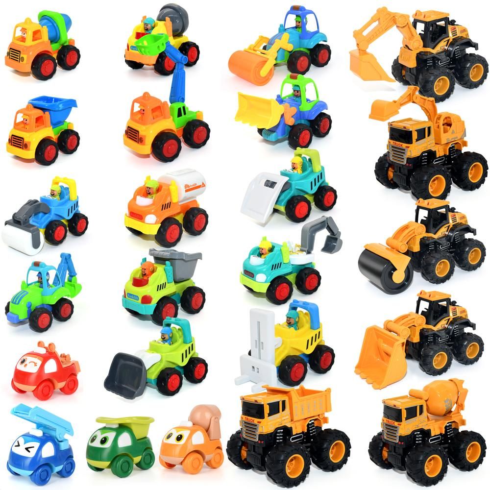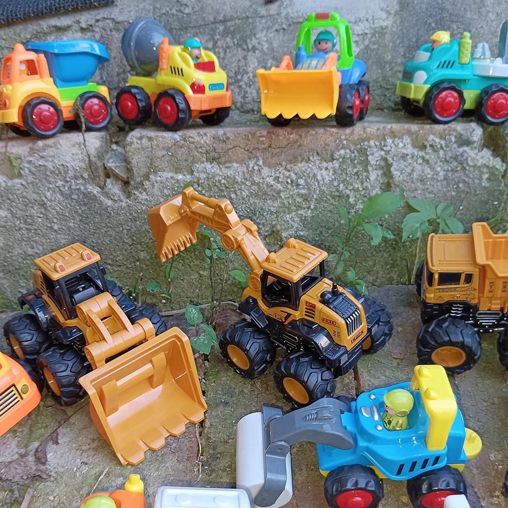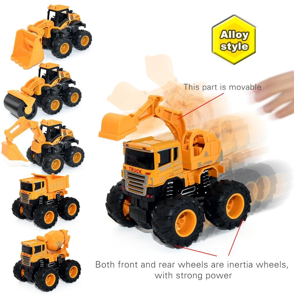 1X Cartoon Engineering Car Toy Inertia Mini Alloy Four-wheel Drive Car Excavator Roller Car Obstacle Clearing Cloud Ladder Car Boy