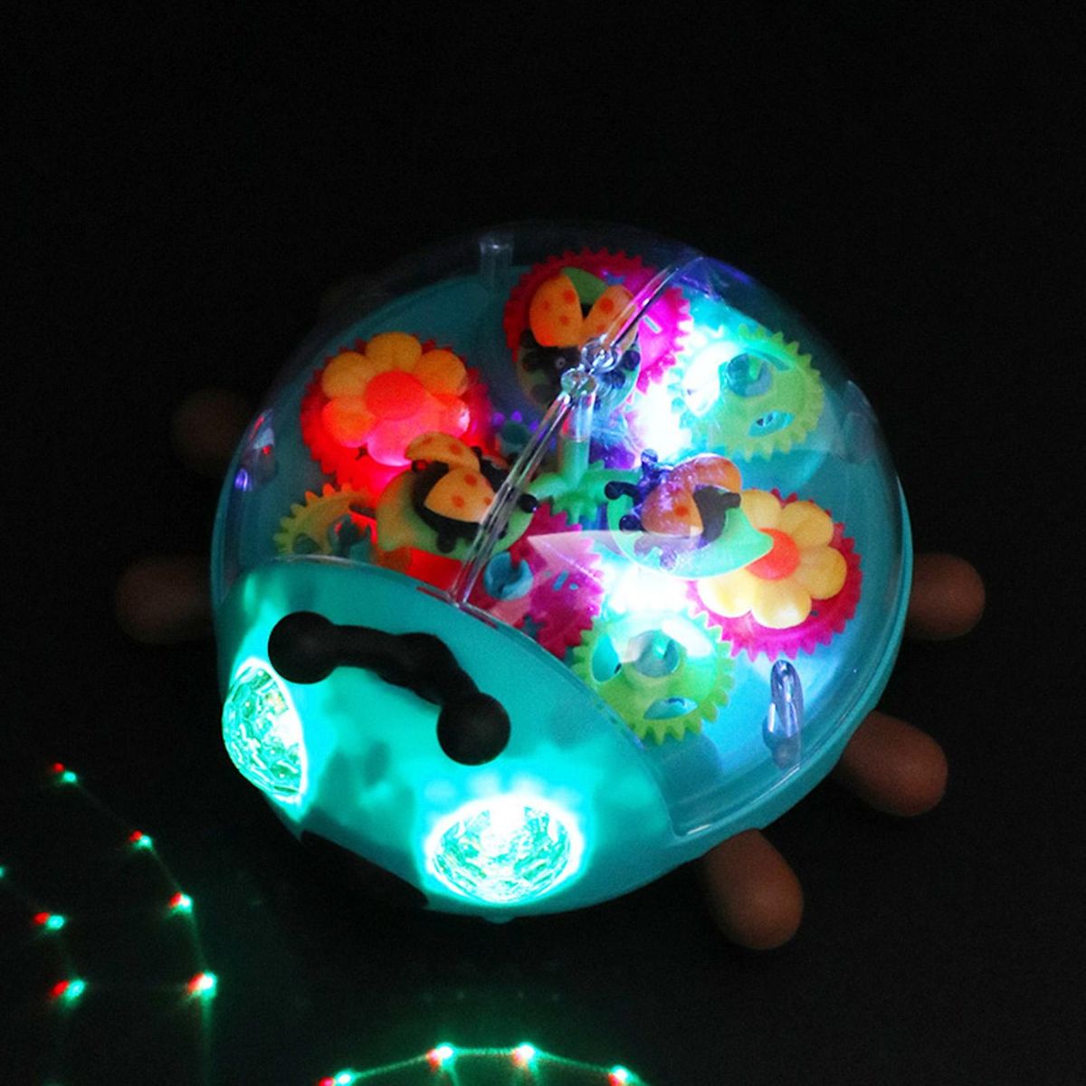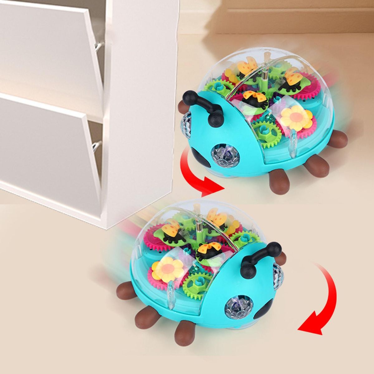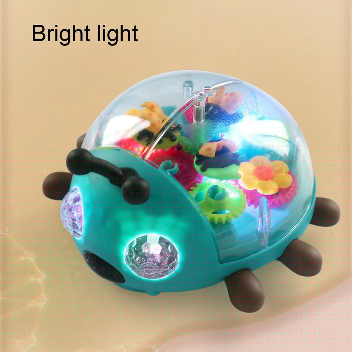 Our cartoon gear toy, a captivating and educational toy designed to fascinate toddlers. this see-through ladybug toy features moving gears, lights, and sounds that will engage and entertain your little one. the ladybug car moves on the floor, as do the gears and lights, providing an interactive play experience.
