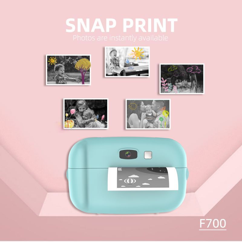 1X HD Bluetooth Wireless Paper Photo Printer Pocket Thermal Printing USB Connection Cartoon Instant Photo Printing Kid Print Camera