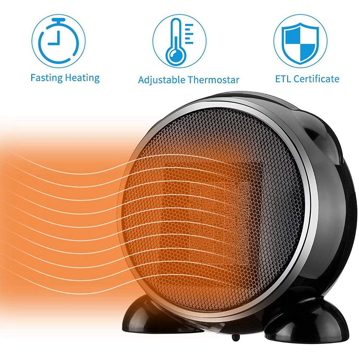 The space heater is made of safe flame-retardant materials and has a fast heating speed (only 3 seconds).