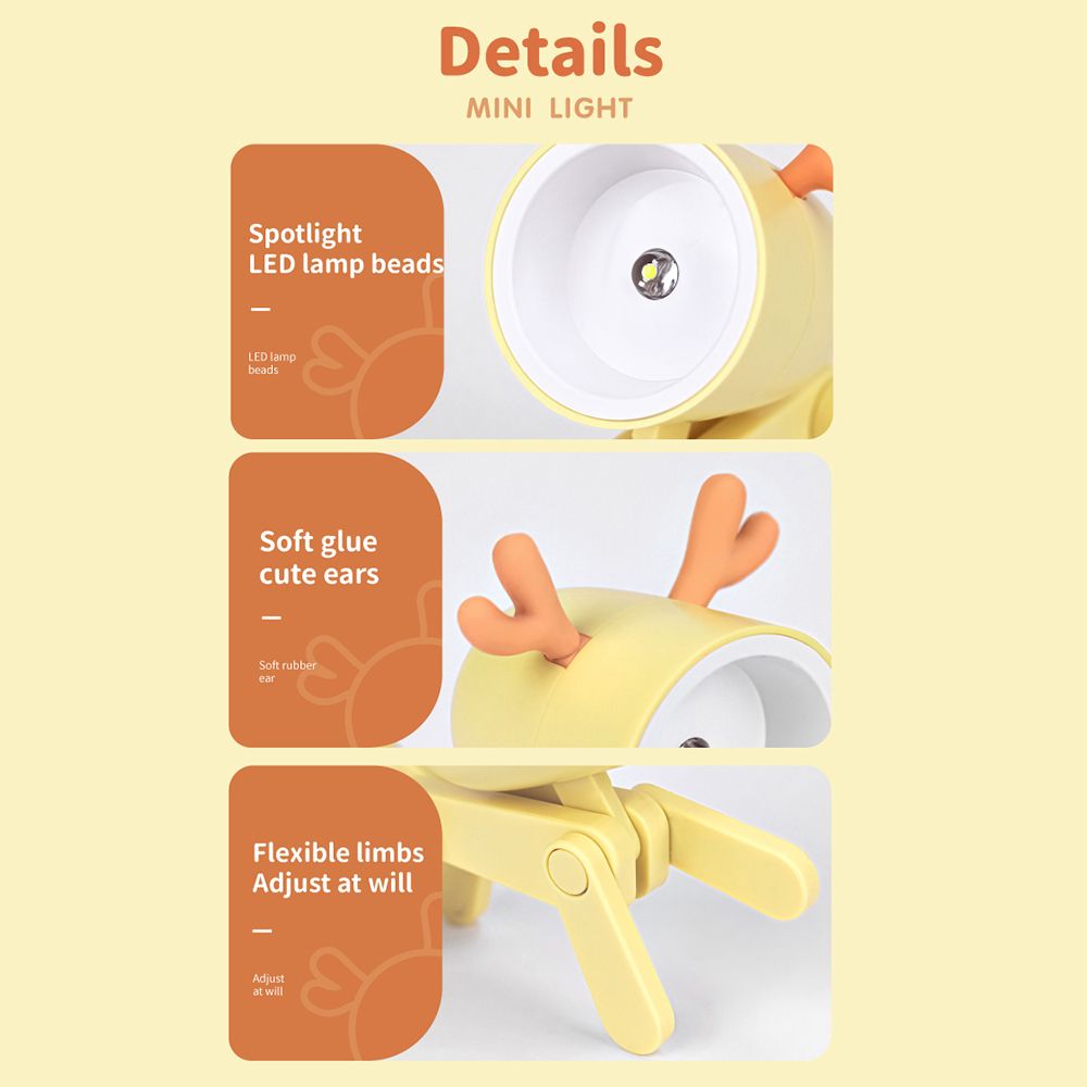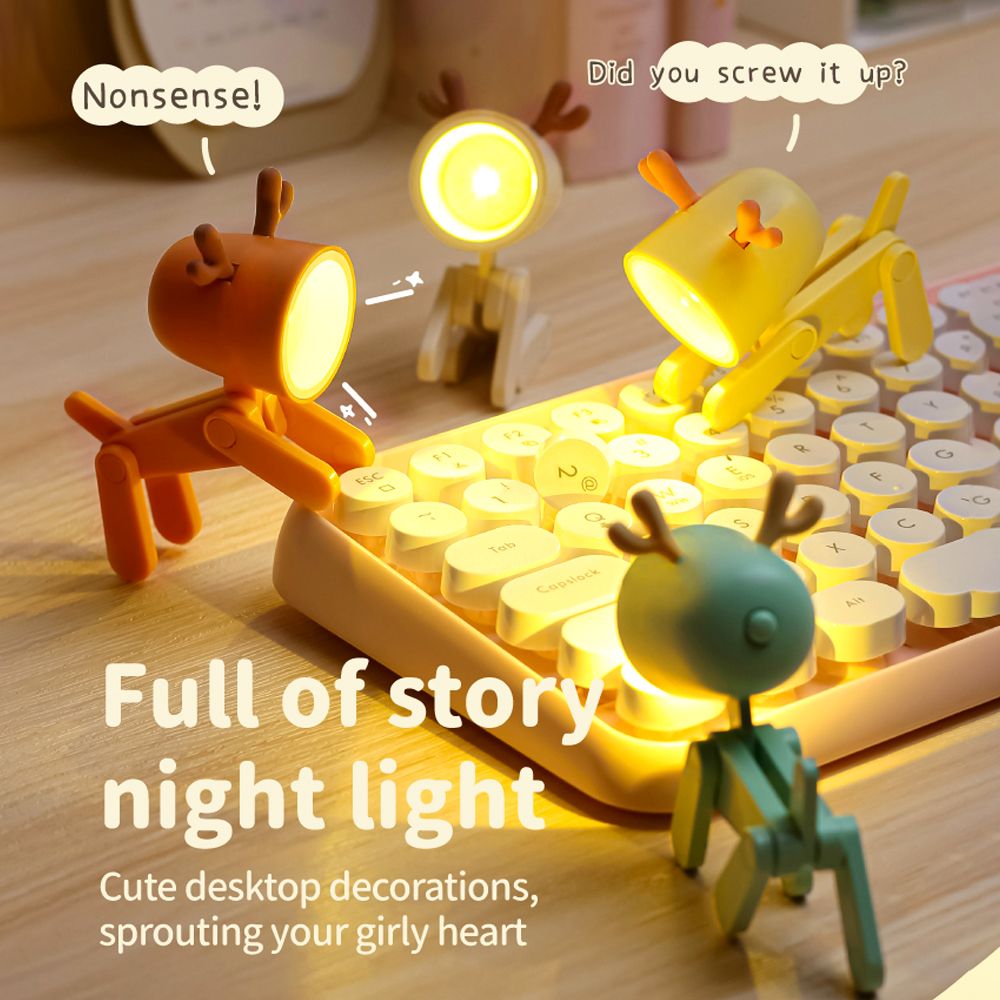 Cute Deer Shape Light and Adjustable Angle: Free to rotate the head and the feet angle at will; It can be used as the mobile phone stand rack. A good decoration in your desktop.