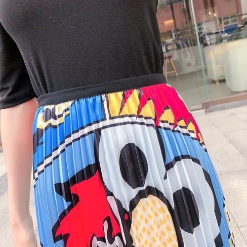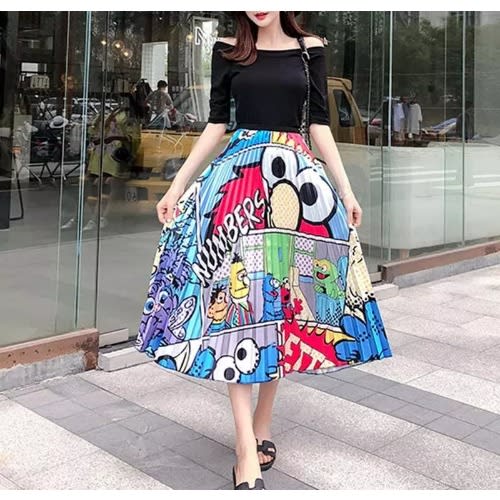 Buy Cartoon Print Pleated A-line Mid-calf Skirt - Multicolour in Nigeria
