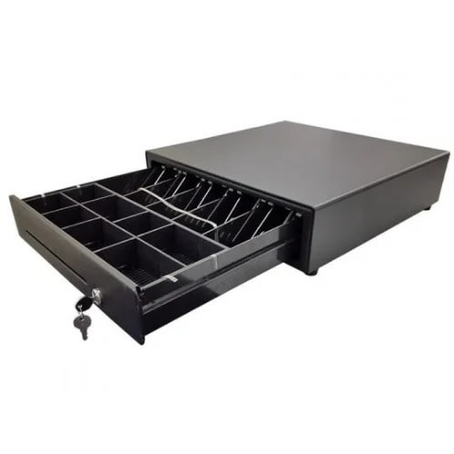 Looking for a Cash drawer for your POS system this register features heavy-duty metal construction and includes a key lock as well as an RJ12 connector. The drawer's front panel features a slip Deposit slot and you can open the drawer with a key or via a 24V signal through the 6-pin (RJ12) connector. It's also Compatible with Select Epson printers! This Cash drawer features removable bill and coin trays with adjustable dividers that let you customize it for the denominations you need most. The bill clips are spring-loaded to keep bills securely in place, but allow for easy removal as well. Keep your money locked up securely, get yours today! Order now.