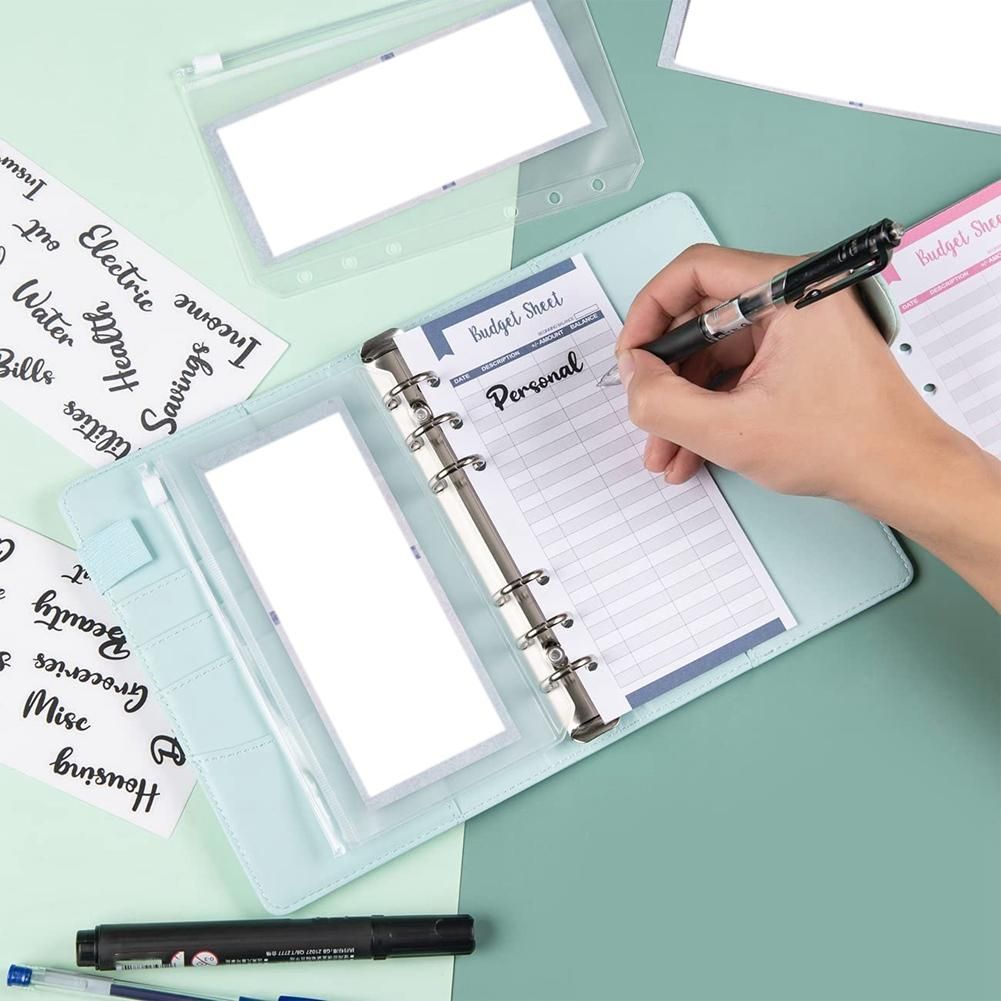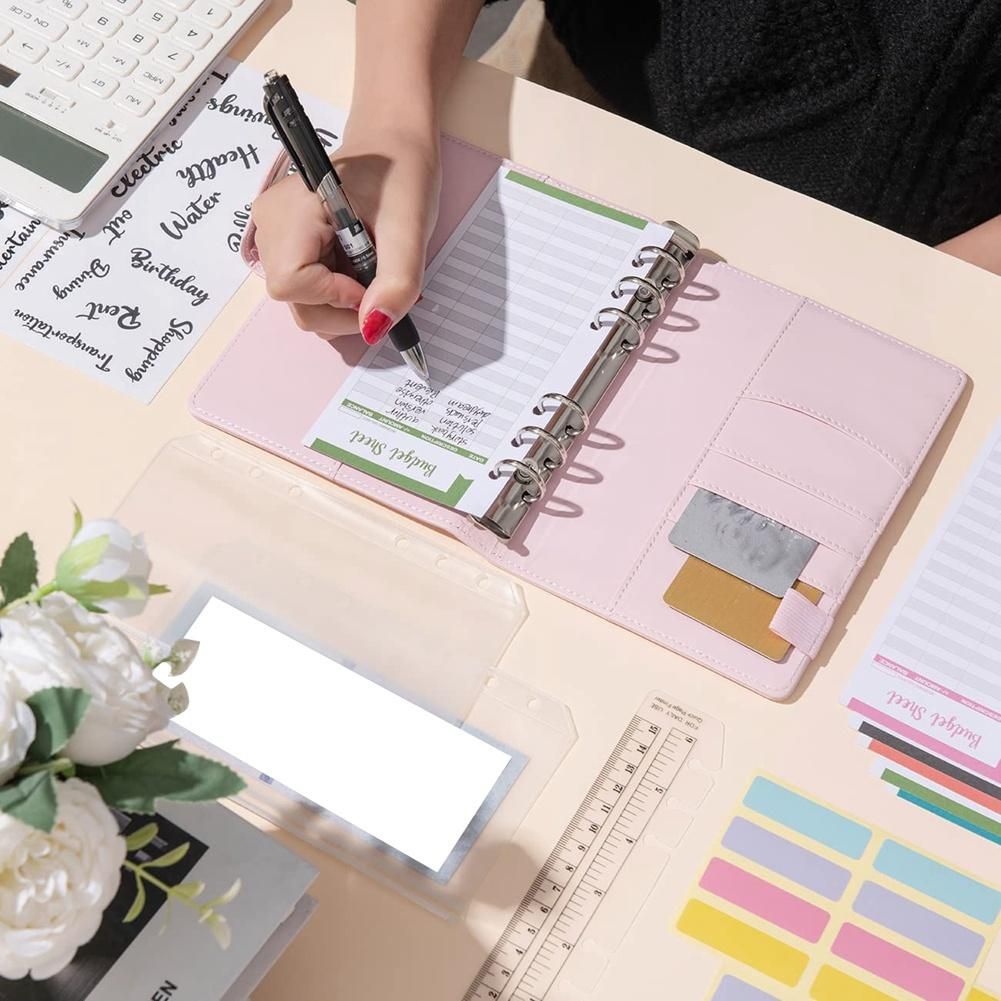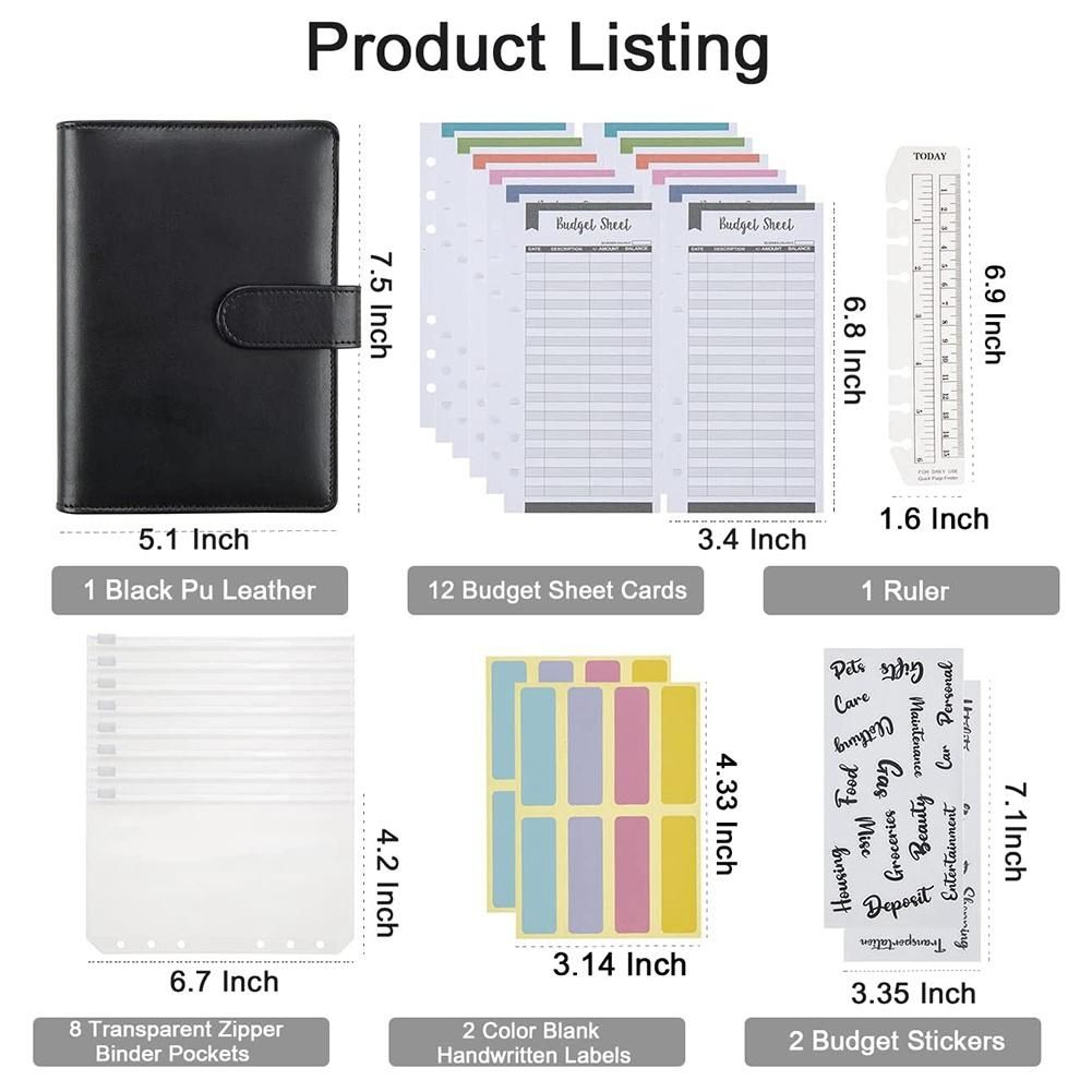 [The Package Includes]: 1 Pu Leather Binder, 8 Transparent Zipper Binder Pockets, 12 Budget Sheet Cards, 2 Color Blank Handwritten Labels (8 Stickers Each), 2 Budget Stickers, And 1 Ruler.