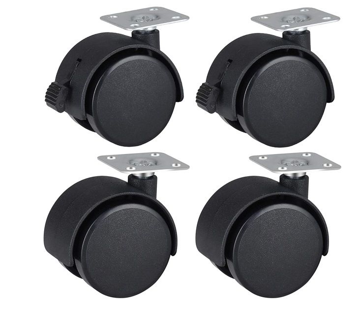 Get this 40mm Caster wheels with Brakes,360 Degree Rotation, Set of 4, Twin Wheel. Smooth, quiet moving and full spin action while guarding your floors with specially made caster wheels. The non-marking wheels are made of uniquely formulated nylon material that protects ALL floor surfaces, including parquet floor, hardwood floor, laminate, Ceramic tiles/marble floors, laminate, carpets,or other floor surfaces. The twin-wheels caster provides low starting and rolling resistance, 360-degree rotation, move quietly, softly and smoothly.