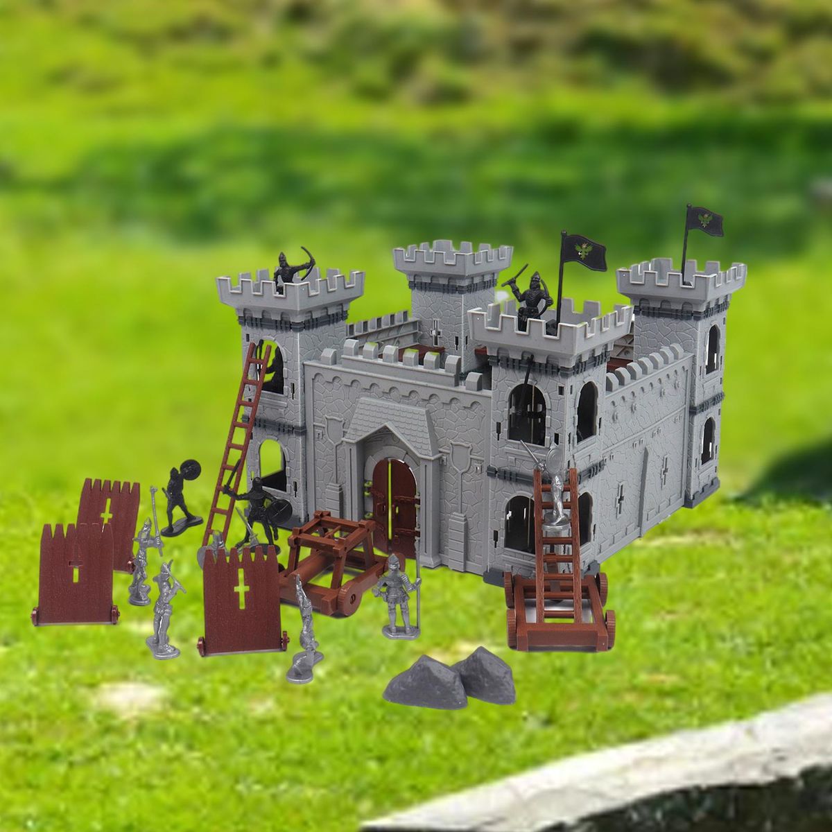 The castle looks real.The Playset with Realistically Scaled Figures and Vehicles.
