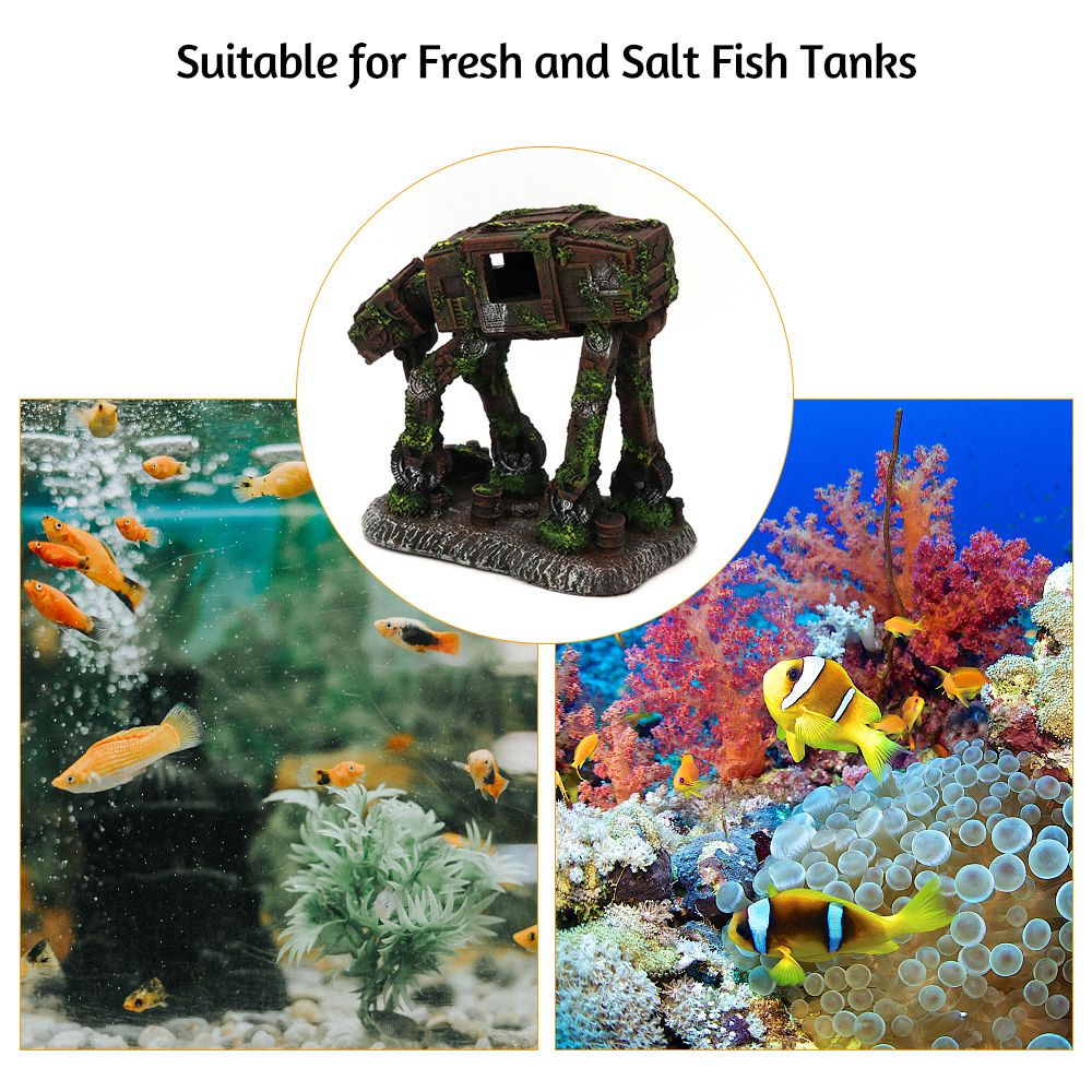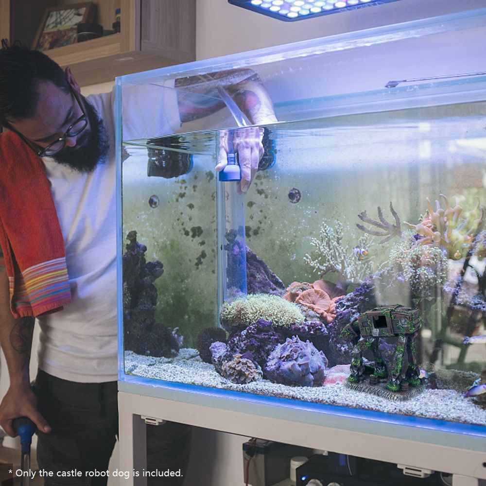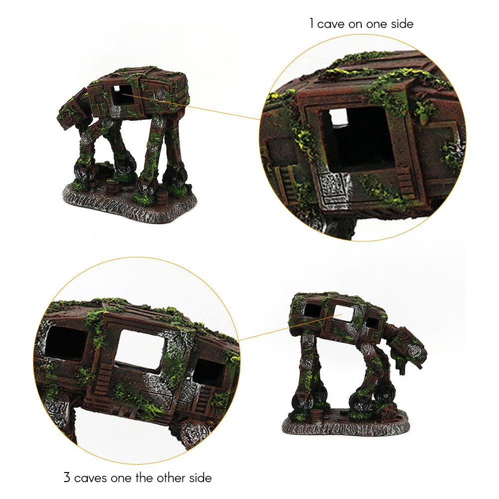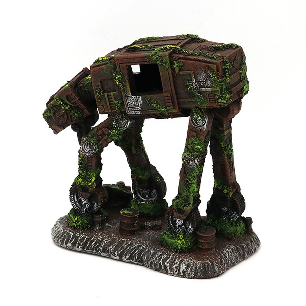 Castle and robot dog structure with lifelike fake moss, making it looks more realistic, adding more viewing value for your aquarium.