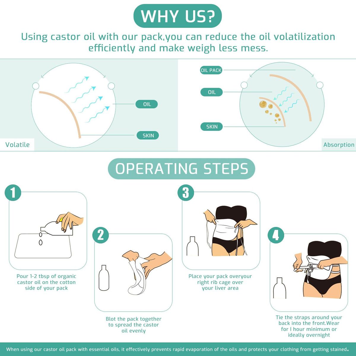 【Easy To Use】:Abdomen Castor can be cleaned before using castor oil packs cloth for the first time. When using, apply castor oil evenly in the middle of the castor oil pad, do not fall the seam, and then adjust the comfortable angle to the abdomen, wear the wrap for about 1 hour.