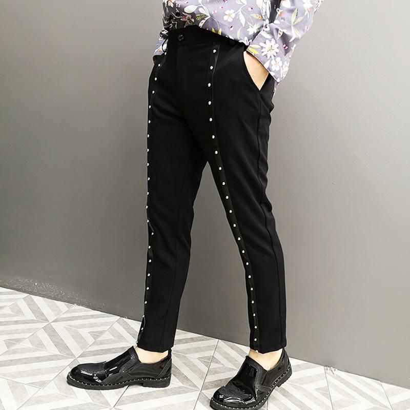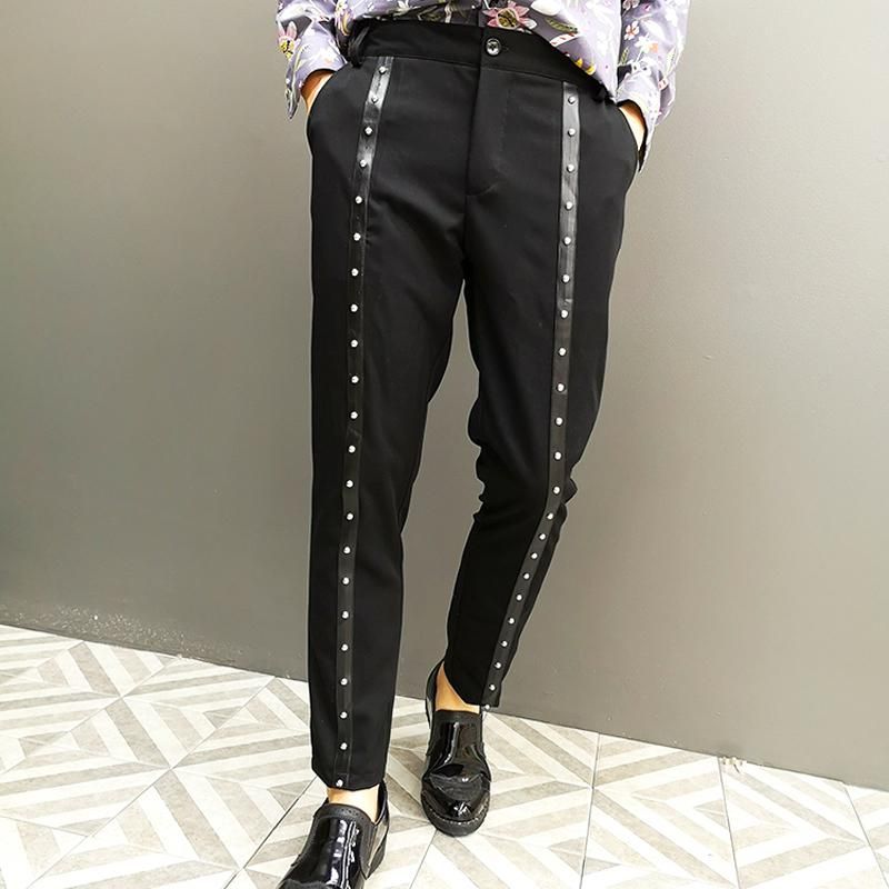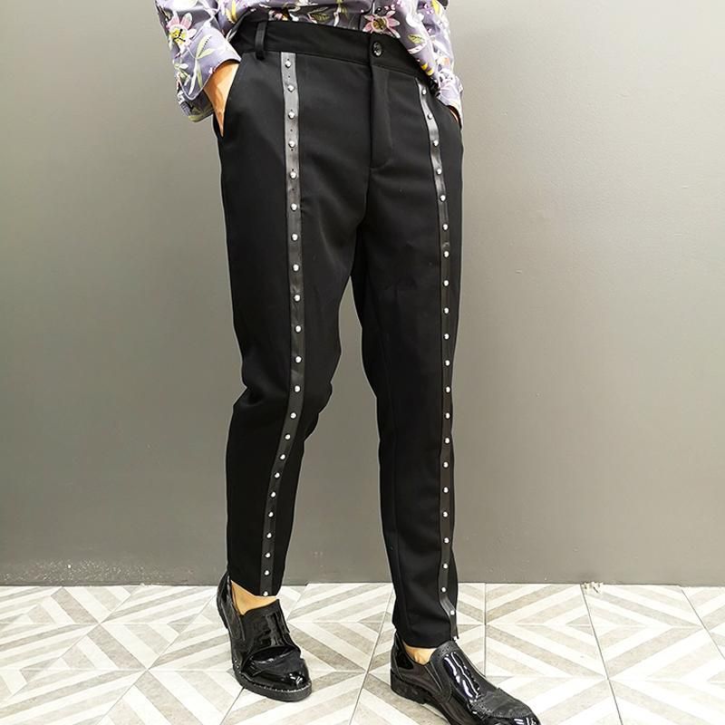 Pantalones informales estilo Hip Hop para hombre, pantalon informal, Punk, gotico, con remaches, haren, Club nocturno, cantante, ropa de escenario
