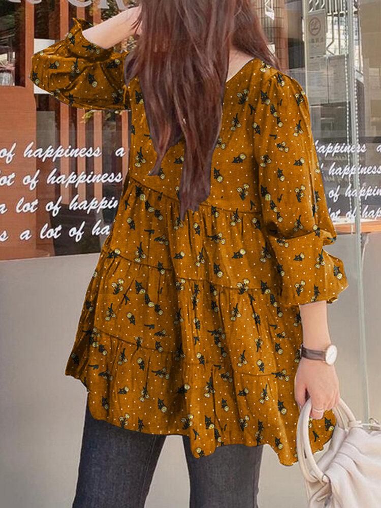 Buy Casual Puff Sleeve Round Neck Long Sleeve Spliced Vintage Pleated Blouse For Women in Nigeria