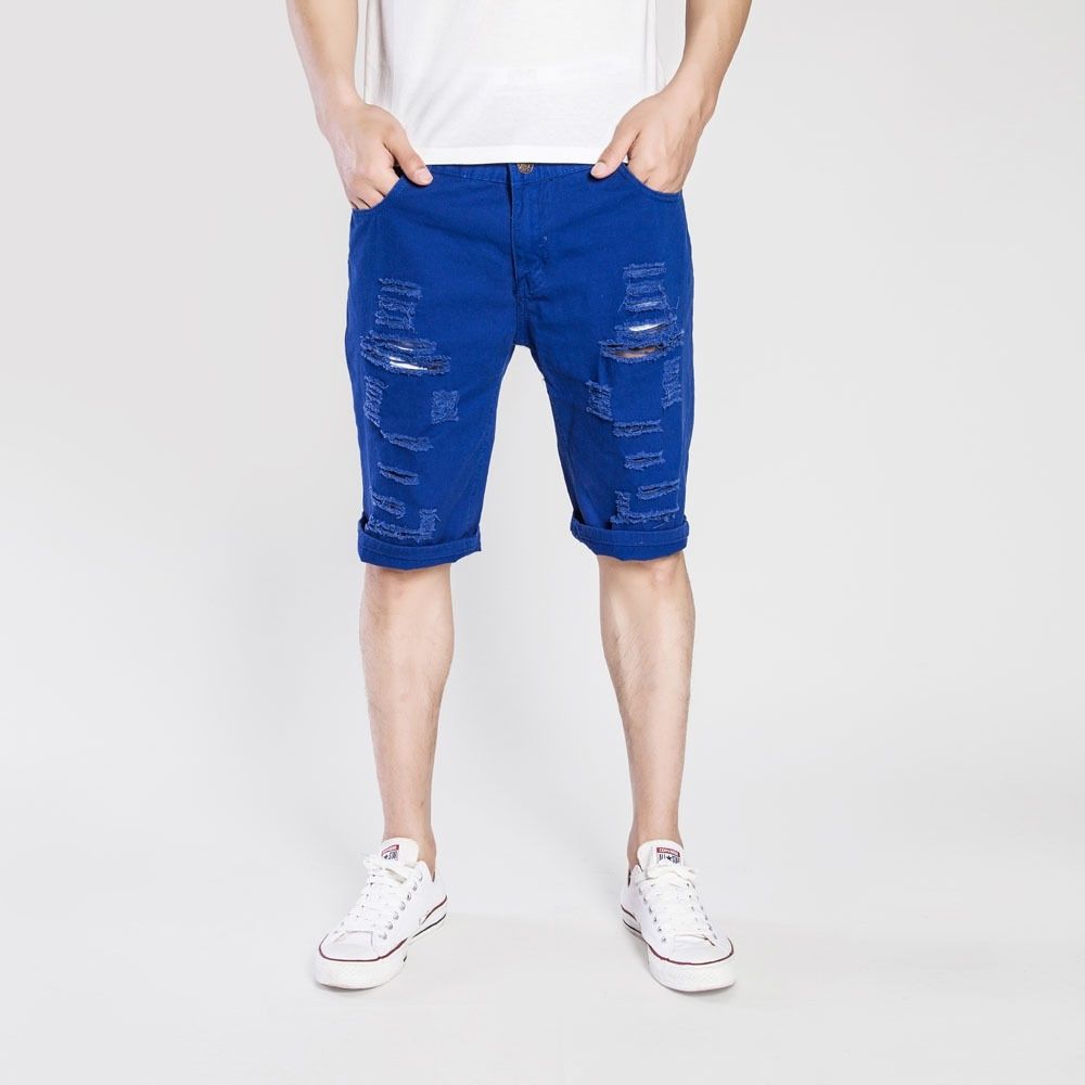 Casual Ripped Denim Shorts for Men (Sapphire Blue)