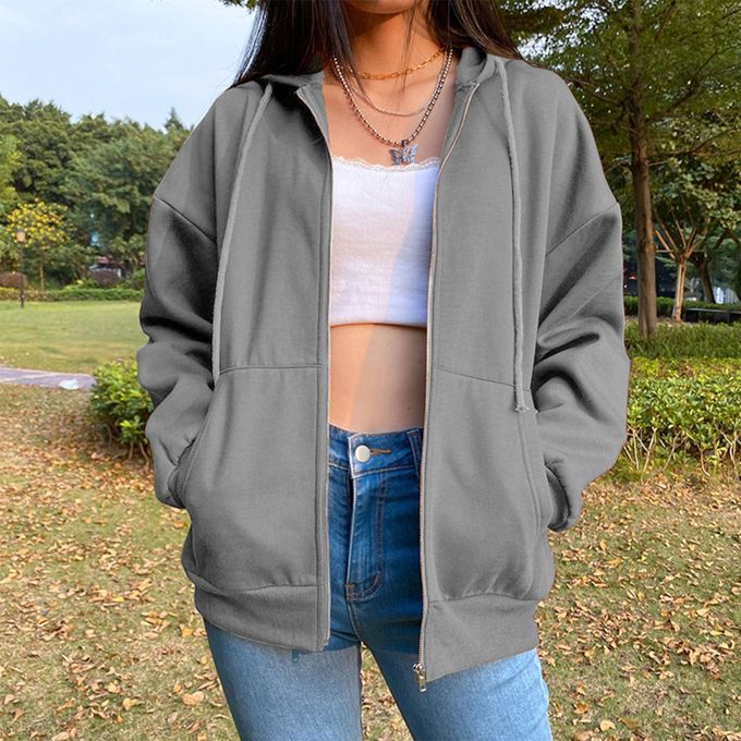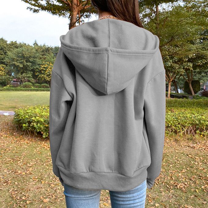 Buy Casual Sweatshirt Zipper Outwear Loose Pocket Collar Sleeve Grey XL in Nigeria