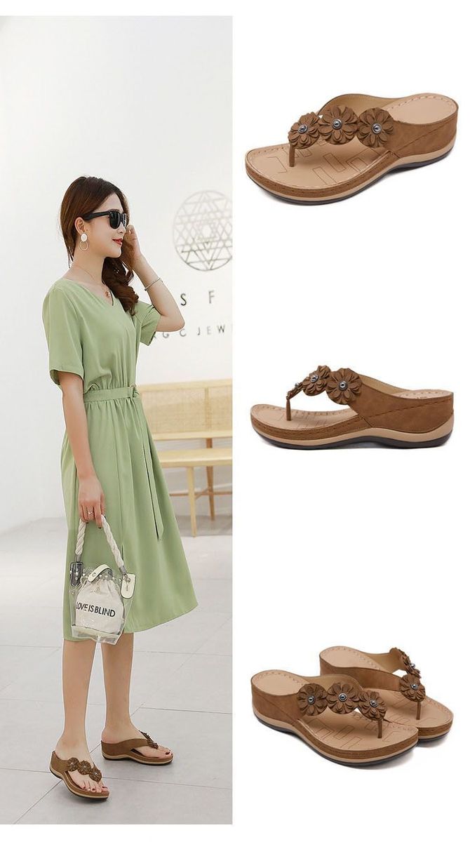 - ❤[Bohemian Summer Shoes]:Flip flops for women are made of high-quality leather fabric, decorated with small flowers, fashionable and elegant. Owning this women's sandals can be easily matched with all kinds of summer clothes.
