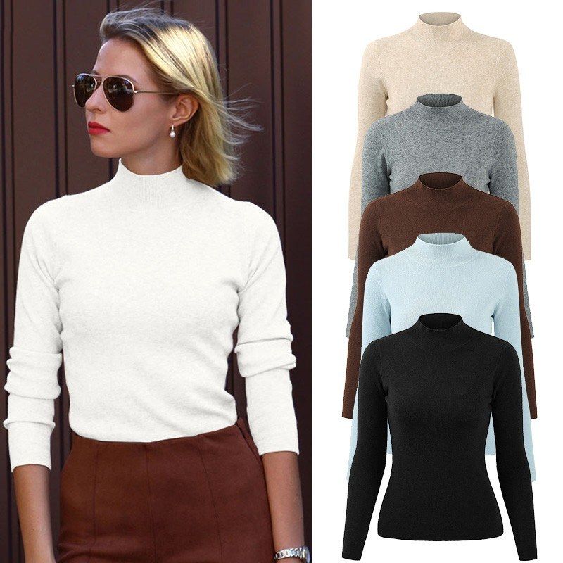 Featured in solid color style, ribbed turtleneck, long sleeves and highly elastic fabric, this sweater can bring you warmth in the cold days. Have it to pair with your coats.