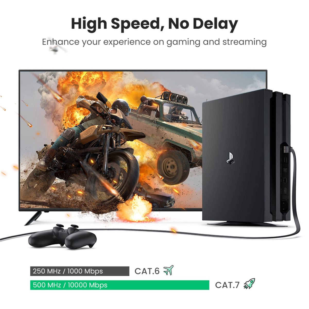 UGREEN ethernet cable cat7 supports bandwidth up to 600MHz and transmits data at speed up to 10Gbps. No matter when you are surfing the Internet, streaming videos, listening to music, or online gaming, there is no hassle of slow network.