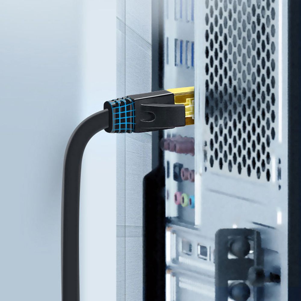 This Cat 7 Ethernet Cable adopts 32AWG oxygen-free copper, offering lower impedance and power consumption. And it supports bandwidth up to 600Mhz and transmitting speed up to 10Gbps, bringing you smooth surfing experience.