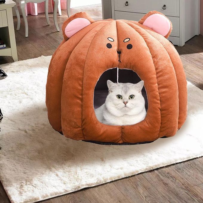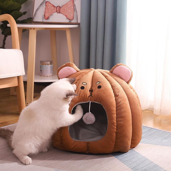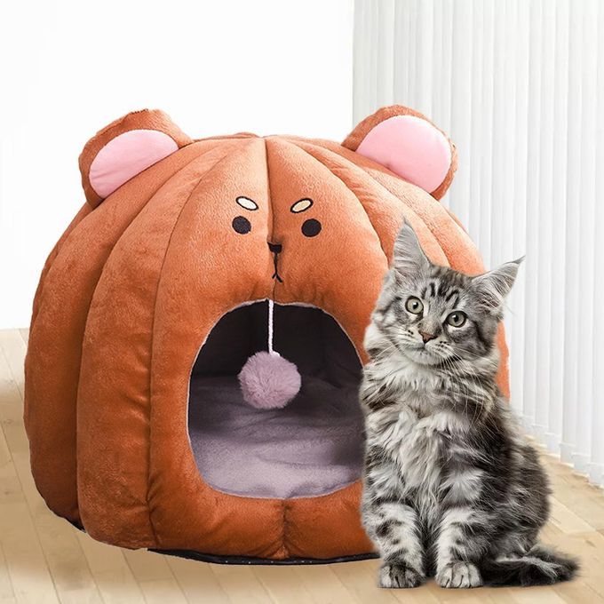 The fully enclosed design locks in warmth and conforms to the cat's hiding nature.