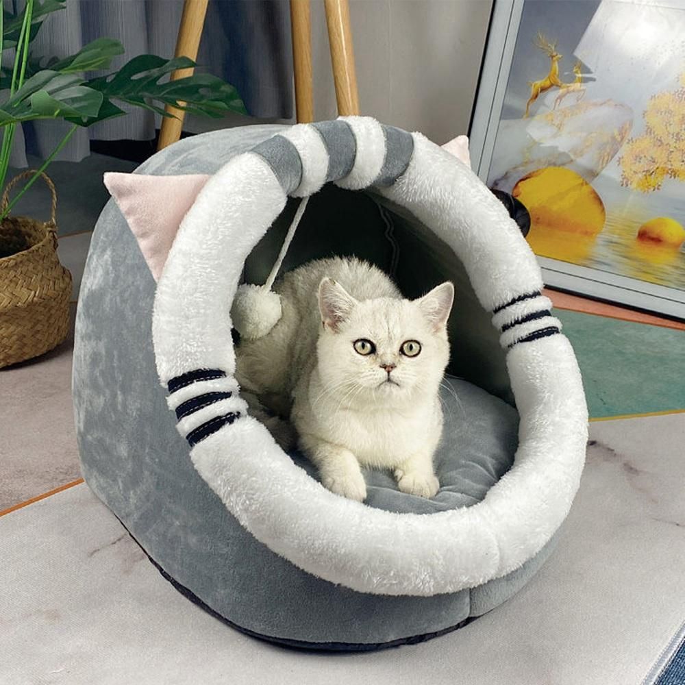 Hanging Play ToyThe plush ball can burn the cat's energy and put your cat back to sleep.The cat will have fun then go to a deep sleep.Bottom use slip-proof and waterproof material, which keeps the cat bed in p on tile and hardwood floors.Bed mat provides year-round comfort in any type of weather or climate.