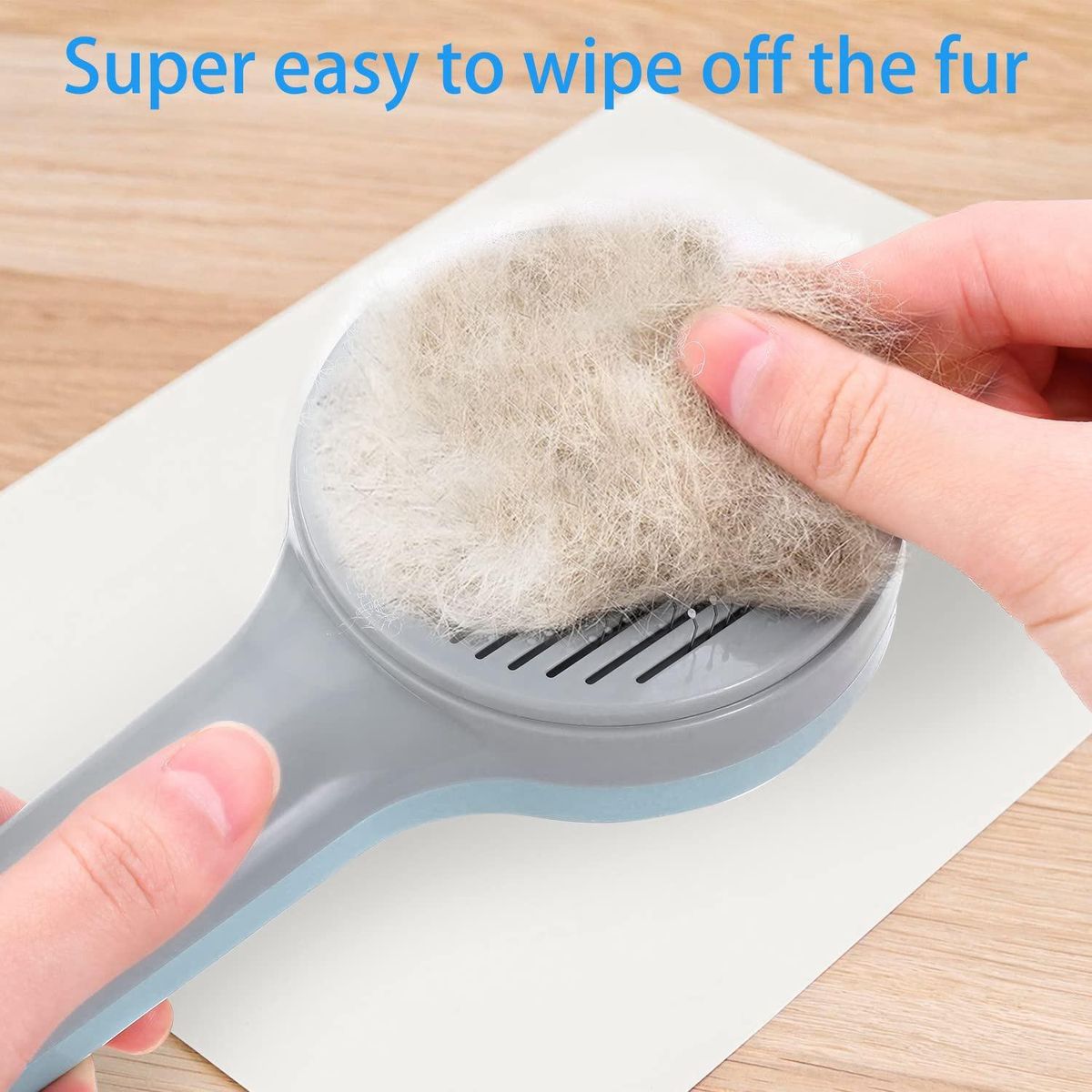Detailed Information About The Product:1. One-click cleaning button: after you brush your pet, simply click on the button. The clasp opens, separates the brushed hair from the metal pin and then wipes the hair. The button of the dog brush for removing short hair at the front saves time and strength when grooming and cleaning.