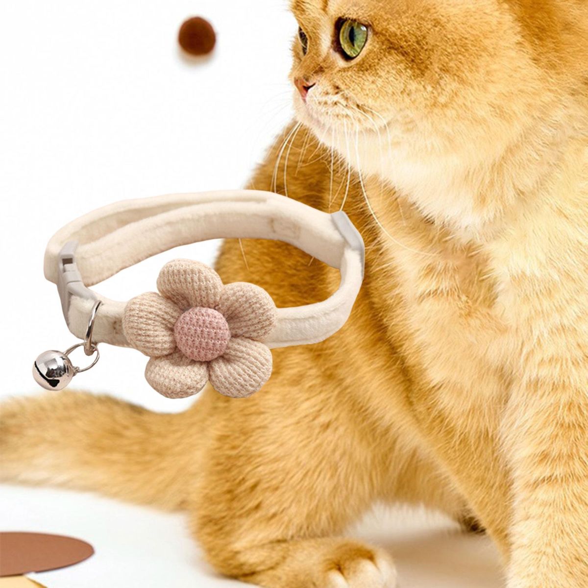 【Cat Necklace】: Cat necklace collar with bells and flower decorative, bell has delicate texture, wear resistance, and durability, with polyester and stainless steel, comfortable, soft, and lightweight for your pets.