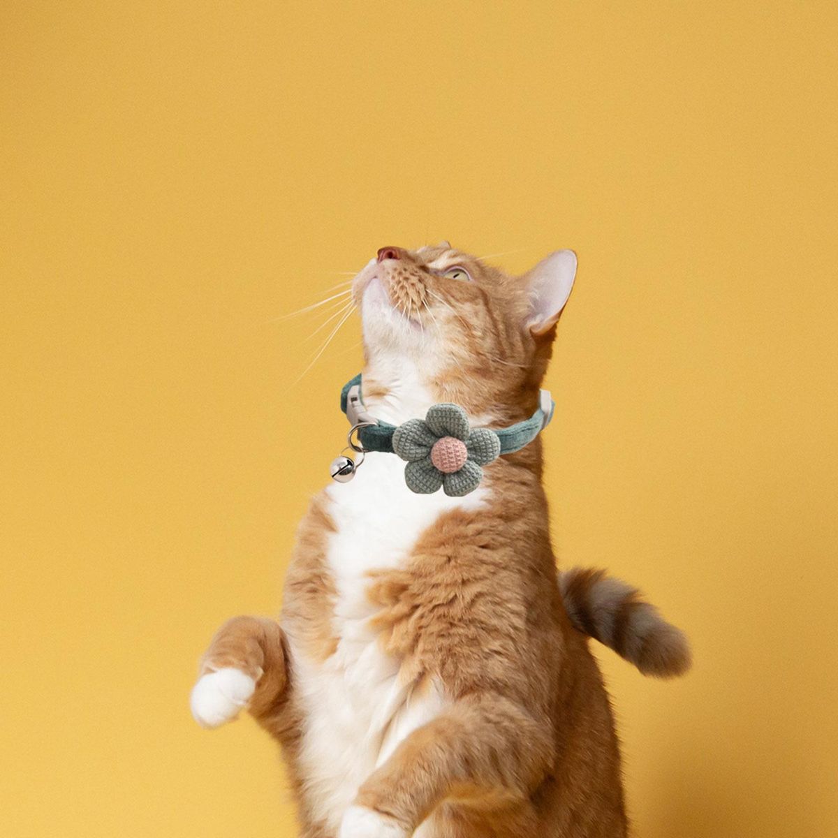 【Cat Necklace】: Cat necklace collar with bells and flower decorative, bell has delicate texture, wear resistance, and durability, with polyester and stainless steel, comfortable, soft, and lightweight for your pets.