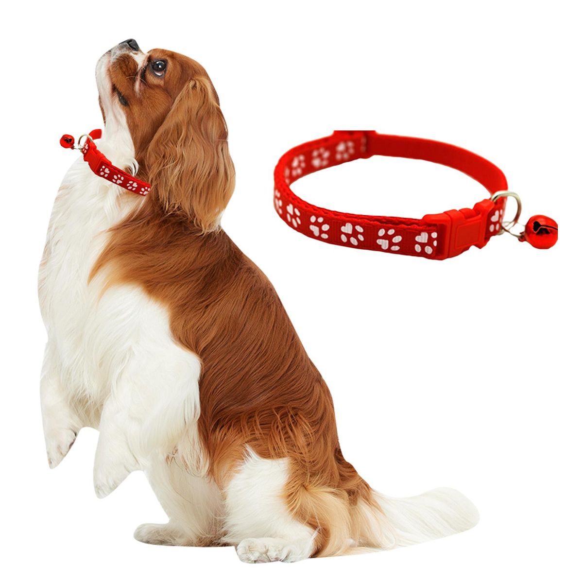 【Cat Necklace】: Cat necklace collar with bells and footprint decorative, bell has delicate texture, wear resistance, and durability, with high quality material, comfortable, soft, and lightweight for your pets.【Comfortable to Wear】: Cat collar necklace designed with adjust the size as your pet's neck size, Neck circumference 19cm-32cm/7.48inch-12.60inch, suitable for cats and dogs, very easy to wear.【Comes With A Bell】: The beautiful pet necklaces are designed with melodious bells, which can make your pets more stylish and eye catching, and When the sounding bell is it can make you know where your pet is and you can find your pet easily, bell is removable. If you don't like the bell.【Application】: Pet necklace collar with bells suitable for teacup dogs, toy poodle dogs, chihuahua dogs, small and medium cats, kitties, kittens, rabbits, and small animals, etc. Perfect for your small dog daily walks, training, outdoor sports, etc. 【Best Gift】: The beautiful fashion pet collars are a great gift for Valentine's Day, weddings, birthdays, and daily, photoshoots. make your pets gentle and formal.