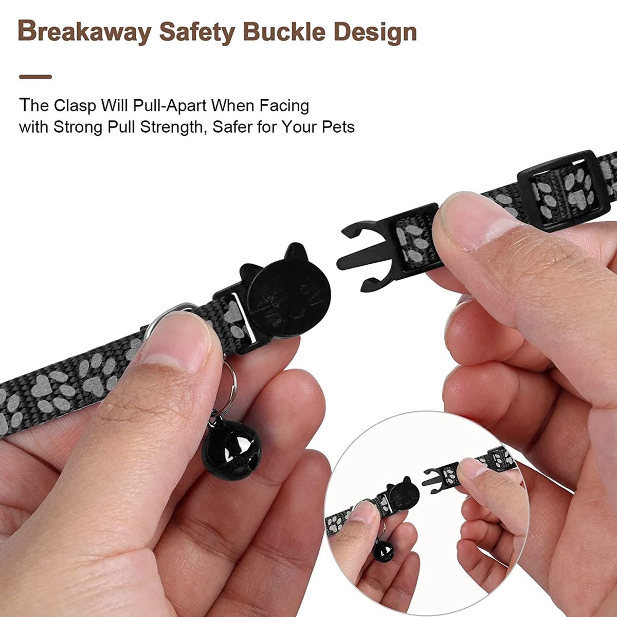 Breakaway Cat Collar: The collar comes with a safety buckle and bell design. The bell is removable, and with the safety buckle, it is easy to release when pulling with force, much safer for your pets.