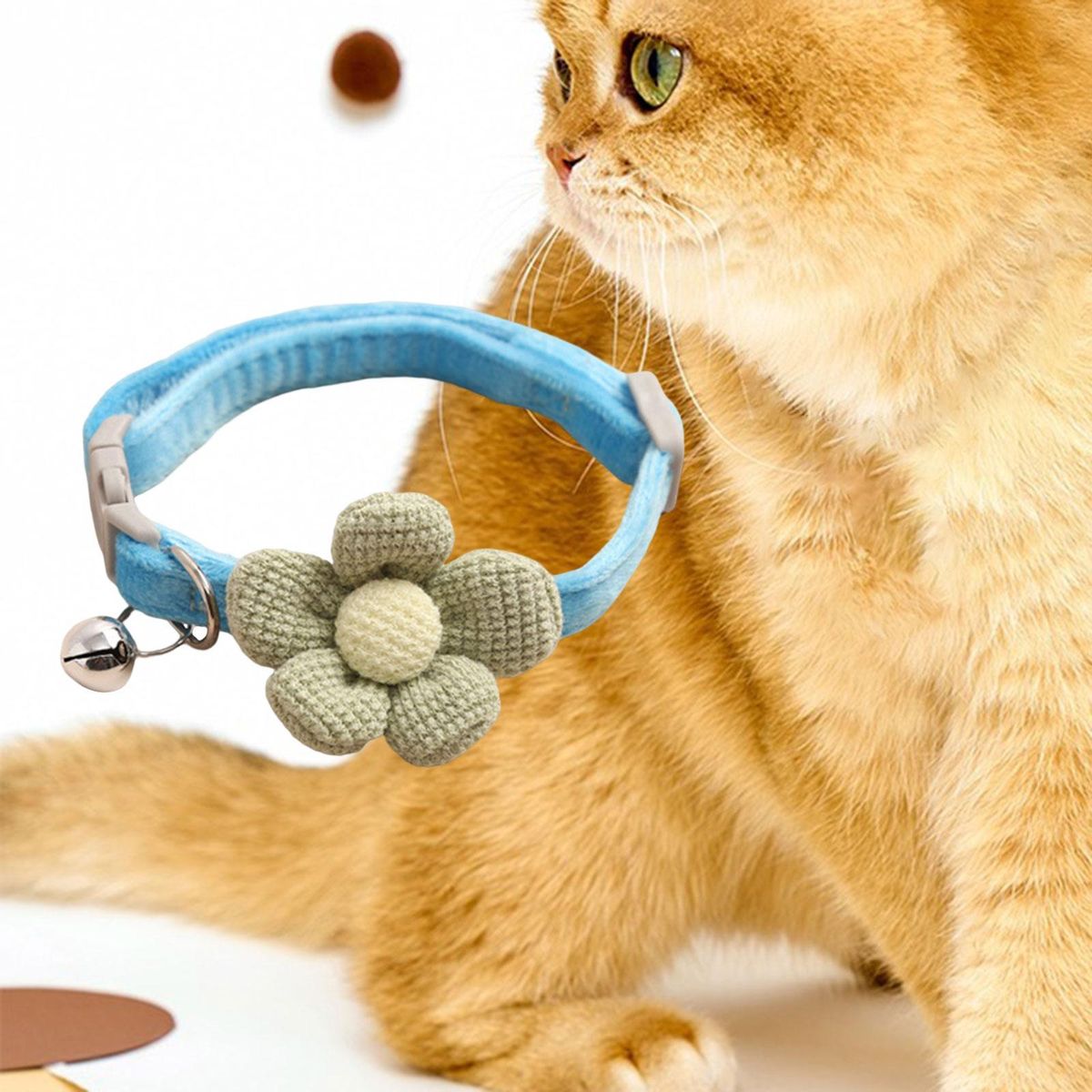 【Cat Necklace】: Cat necklace collar with bells and flower decorative, bell has delicate texture, wear resistance, and durability, with polyester and stainless steel, comfortable, soft, and lightweight for your pets.