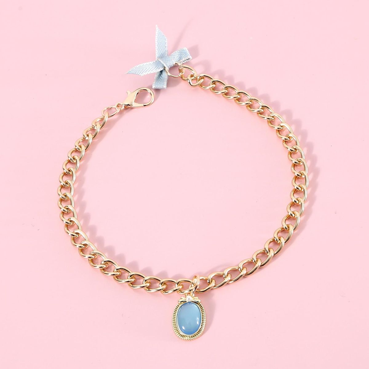 A pet necklace decorated withgemstone pendants and bows is exquisitely made to make your pet look more elegant and charming. It is adjustable, and the size can be adjusted.