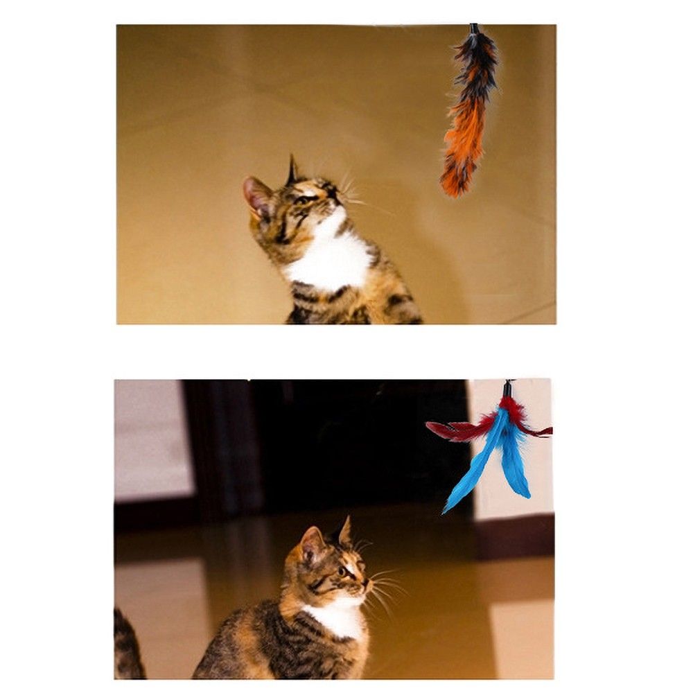 Comes with 10 pcs feather and 1 pcs wand. The feather\'s head is replaceable to make more freshness and fun, cats won\'t be boring anymore. The bell on the feather can attract the attention of the cat.