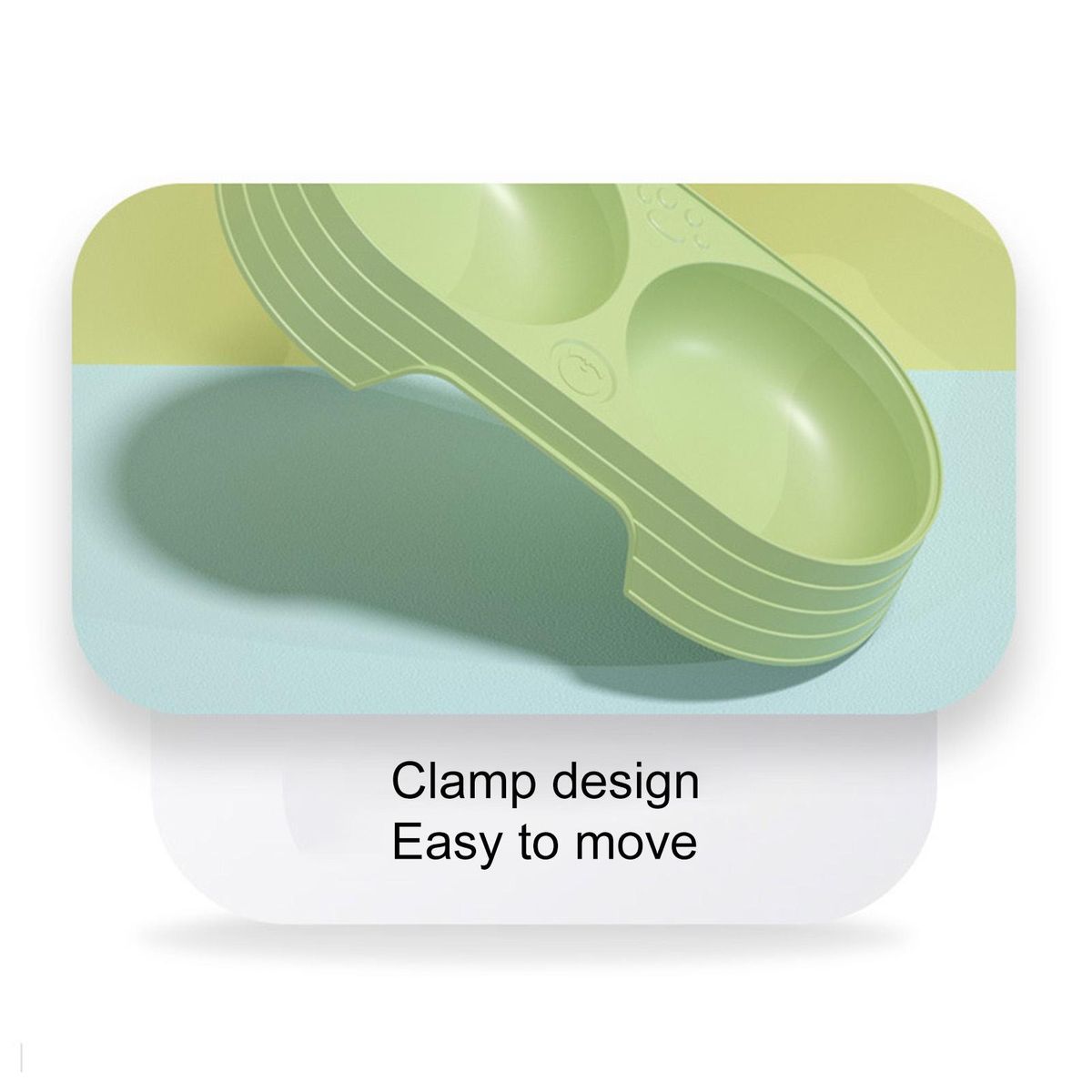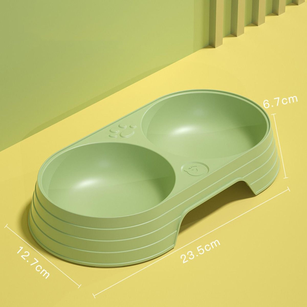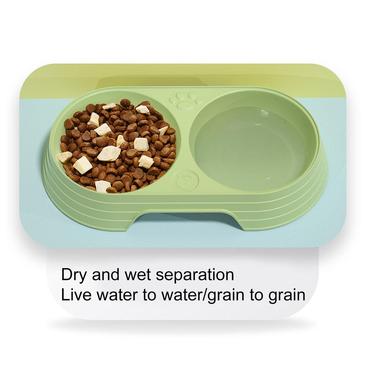 A pet bowl is designed as a double bowl, which can separate wet from dry and prevent odor. It has a large capacity and can hold enough water and food.