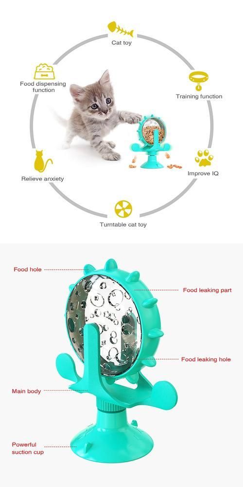 1. This is a multifunctional pet toy with functions such as food leakage, windmill, and rotation. Multiple designs attract pets' interest in playing.