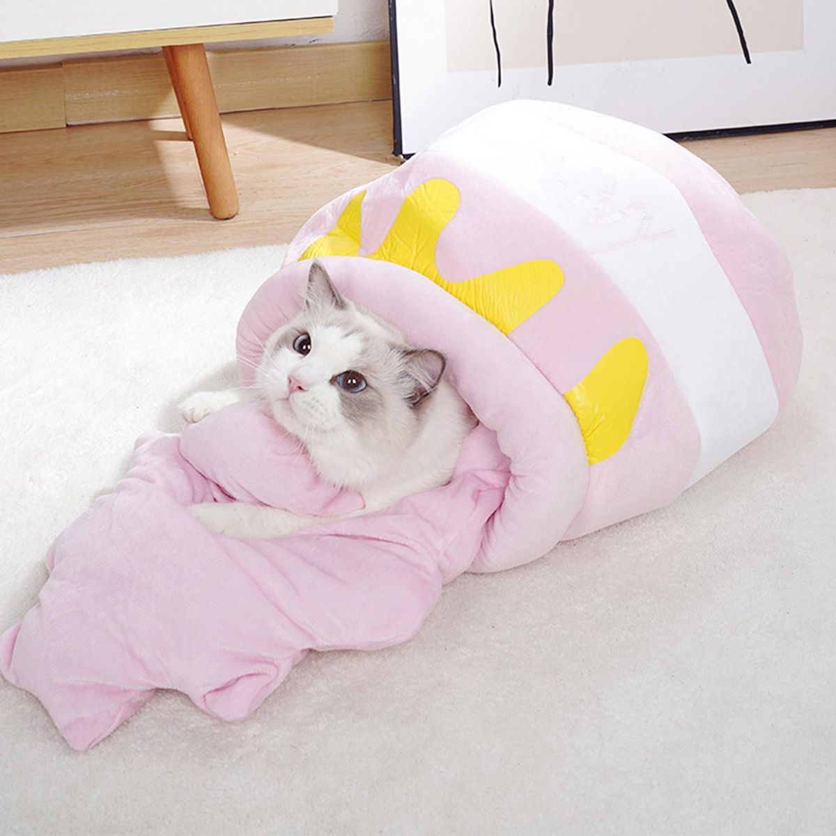 This cat nest is fully filled, which will not easily deform. This cat nest has removable and washable cushion, which can keep clean and tidy.