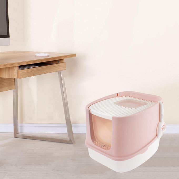 cat Litter basin;cat litter box basin pet supplies toilet;house lid enclosure indoor top entry;furniture hidden self cleaning covered;kitten large scoop small cute tray waste;enclosed pretty high sided easy clean inclosed