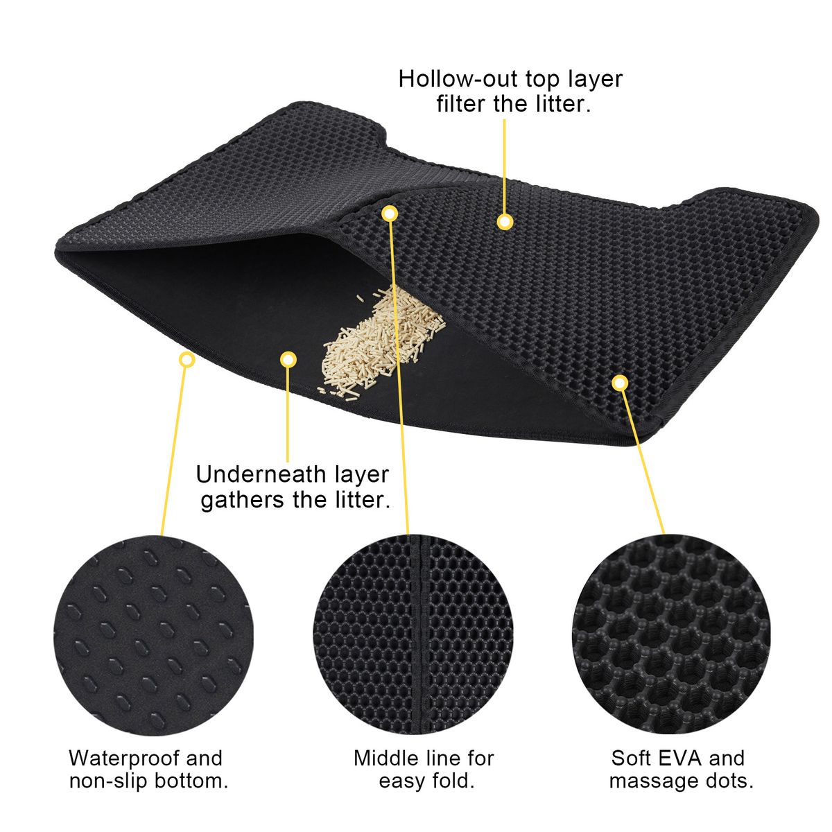Features:Mat for Litter Box: Soft EVA mat is used beside the litter box to filter and gather litter carried out by the cat.
