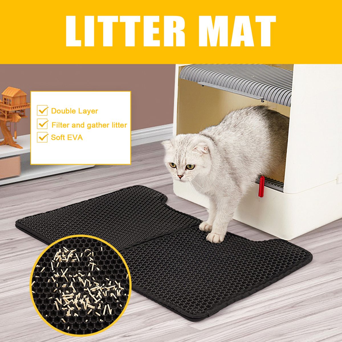 Mat for Litter Box: Soft EVA mat is used beside the litter box to filter and gather litter carried out by the cat.