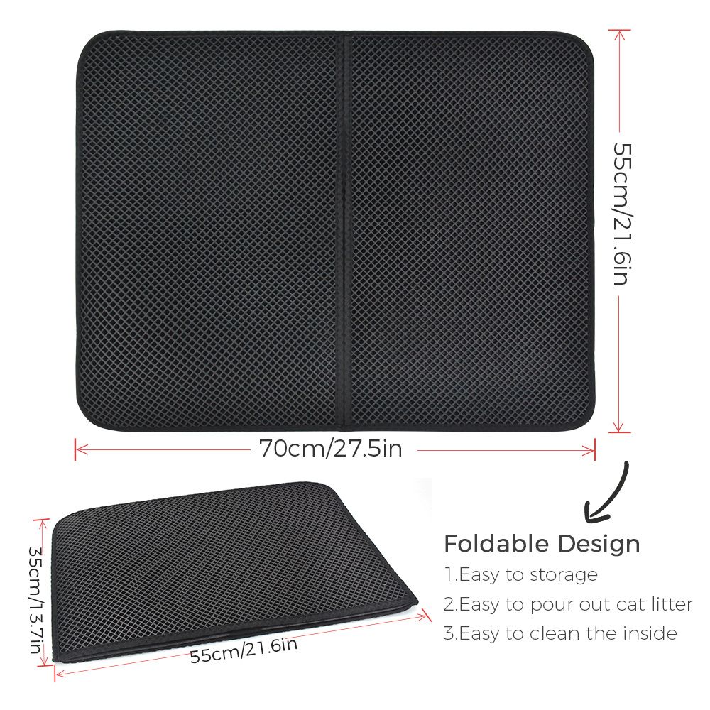Descriptions: Color: black, gray s litter from cats paws and litter from box EVA material, super light, easy to carry For really mey cats be sure to use puppy pads as they soak exceive urine Super smooth surface, doesn't bother cat paws like other mats Easy cleaning under sink head, shower head, or shake off Package included: 1 x Cat Litter per Litter Mat Clean Cat Mat with Water Proof Layer Note: The cushion will be folded or rolled up during delivery. Ar receiving it, the cushion can be unfolded under reverse finishing. The cushion will be resilient and evenly restored.