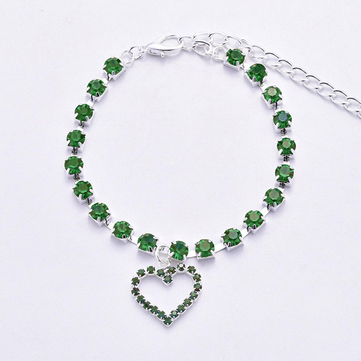 A pet necklace is decorated with heart pendants and rhinestones, shiny and exquisite in workmanship. It has an adjustable extension chain, and its size can be adjusted.